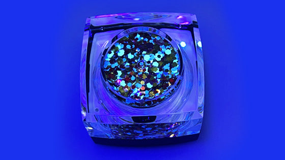 Elektra Cosmetics Bolt Balm is an intense blend of chunky and fine glitters custom mixed in an aloe vera gel base. It’s perfect for hair, body, face, or highlight but is NOT eyelid safe.