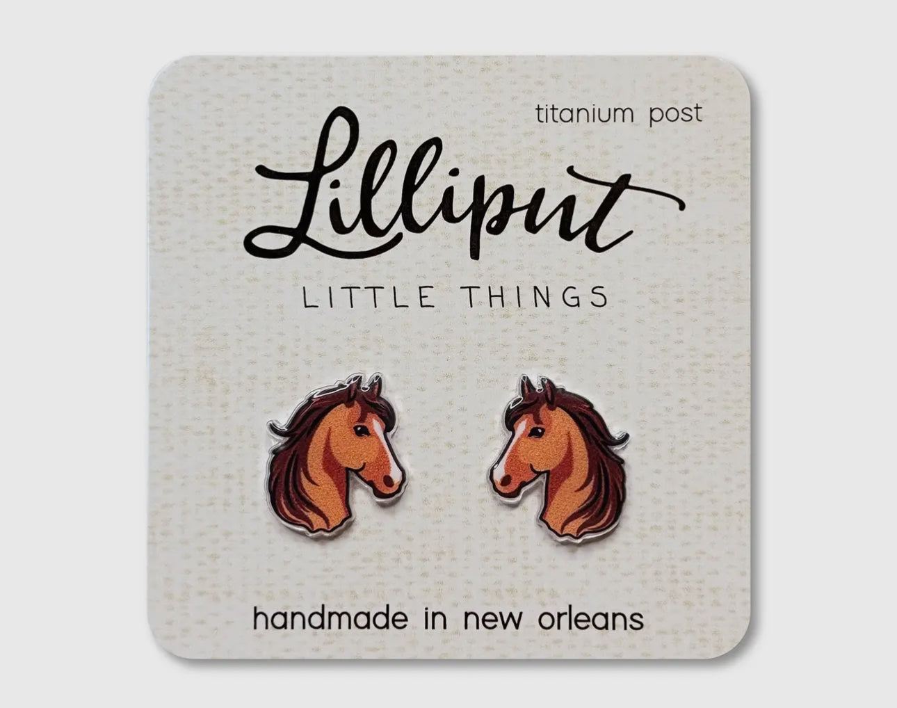 Acrylic earrings featuring a beautiful chestnut horse, UV printed on acrylic with a titanium post.
