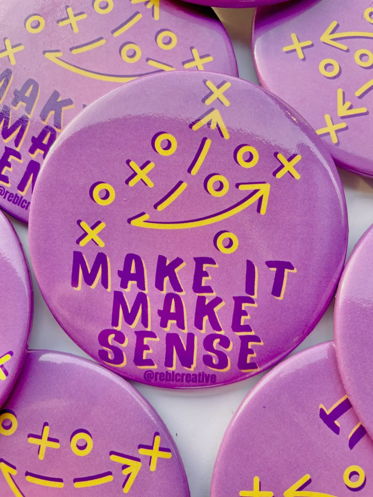 Elevate your LSU game day look with our Make It Make Sense purple and yellow button! This 3-inch round diameter pinback not only shows off your team spirit, but also features a durable plastic coating for long-lasting use. Don't miss out on this must-have accessory. Geaux Tigers!