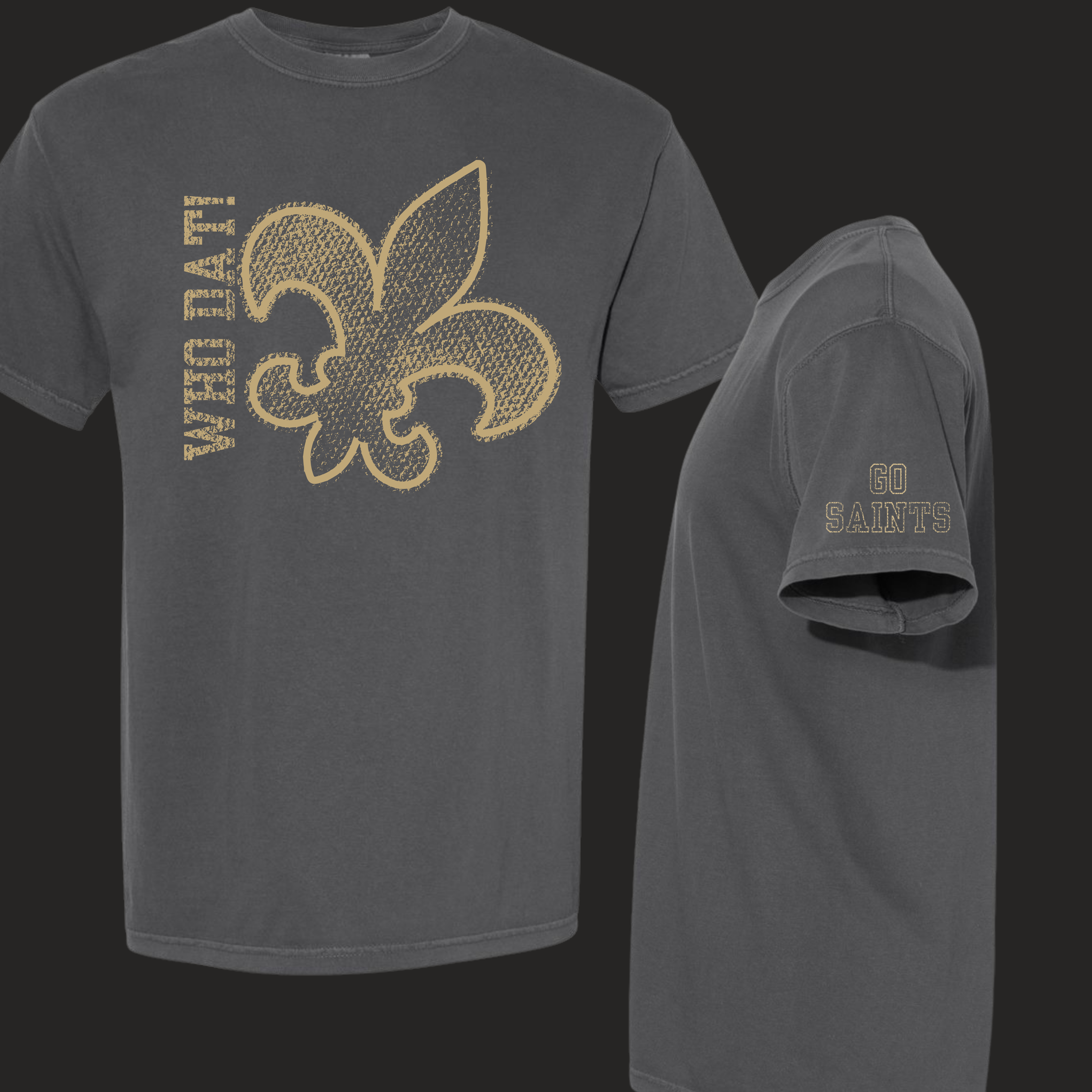 The Who Dat Fleur De Lis T-shirt is a comfortable 100% cotton shirt featuring the fleur de lis. It’s a great way to show your Saints team spirit on game day.