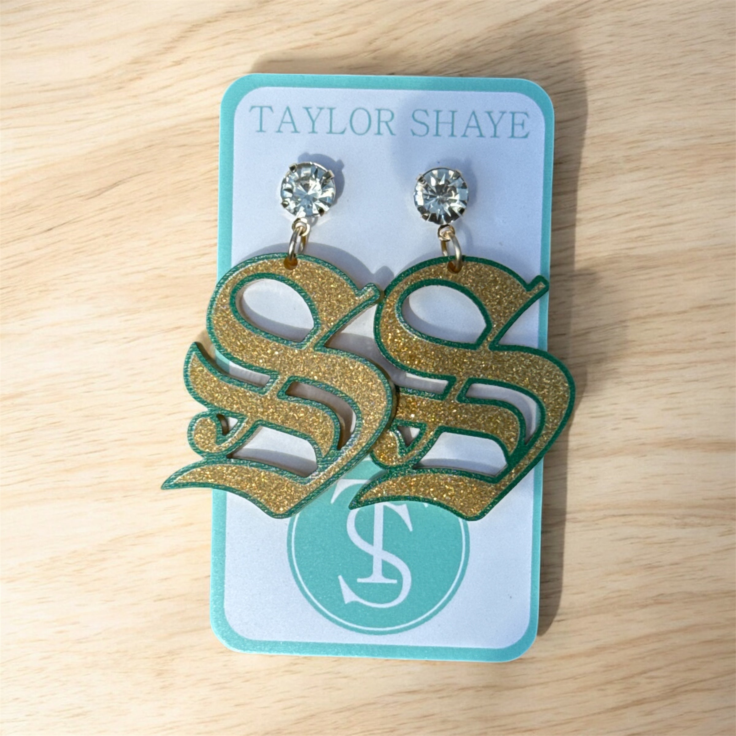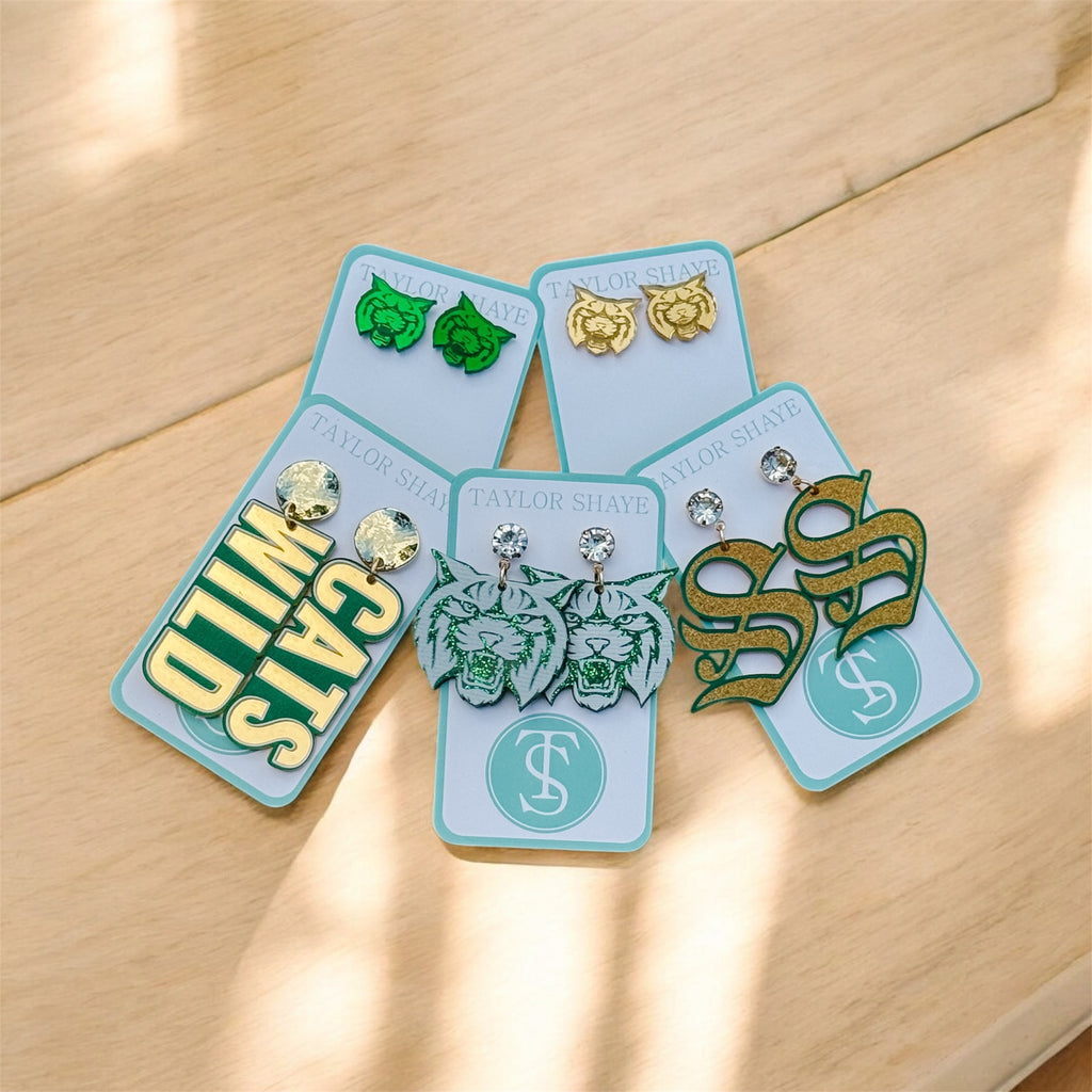 Exclusively designed by Taylor Shaye Designs and A Vineyard Boutique, the Silliman "S" Green & Gold Glitter Earrings capture the vibrant spirit of the Silliman Wildcats. These expertly crafted earrings showcase a shimmering gold glitter, making them the essential accessory for fans seeking a refined yet bold expression of school pride. Perfect for elevating any Wildcats-inspired ensemble with a polished, standout finish.