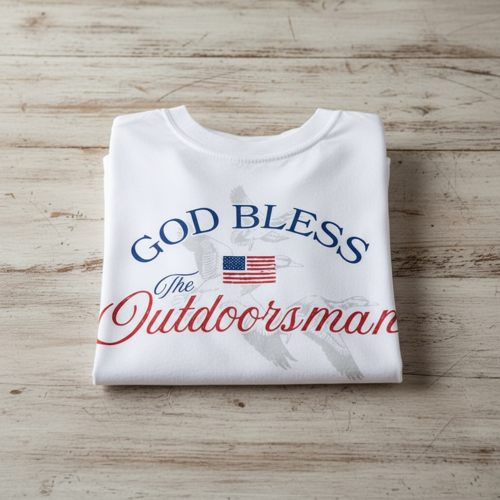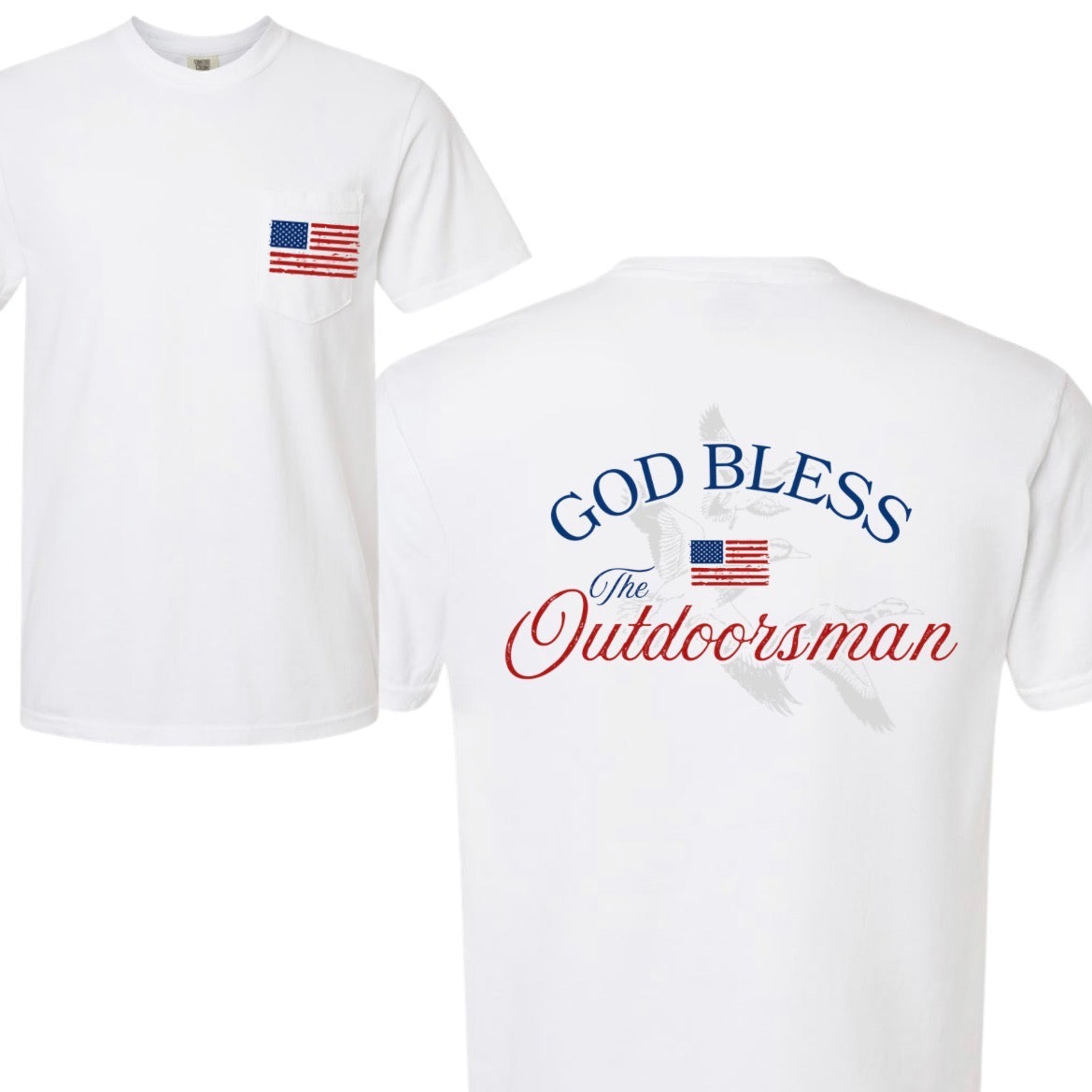 God Bless The Outdoorsman Duck T-Shirt celebrates the spirit of the hunt with bold patriotic style. This classic tee features a striking duck silhouette paired with an American flag design on the front pocket—perfect for hunters, outdoor enthusiasts, and anyone who loves country living. Comfortable, durable, and unmistakably American, it's an ideal choice for the range, the field, or everyday wear.